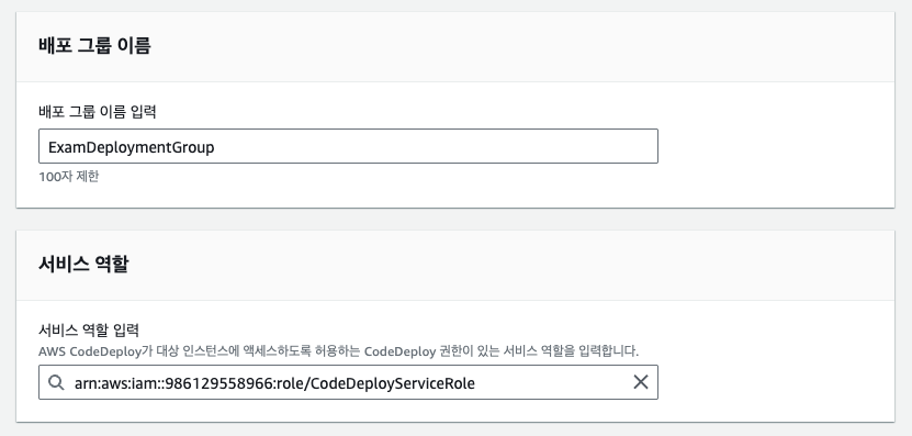 다음으로 배포 그룹을 만들고 IAM은 전에 만들어둔 IAM으로 연결해주자.