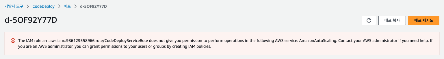 CodeDeploy에서 배포 시 위와 같은 에러가 발생할 수 있다.