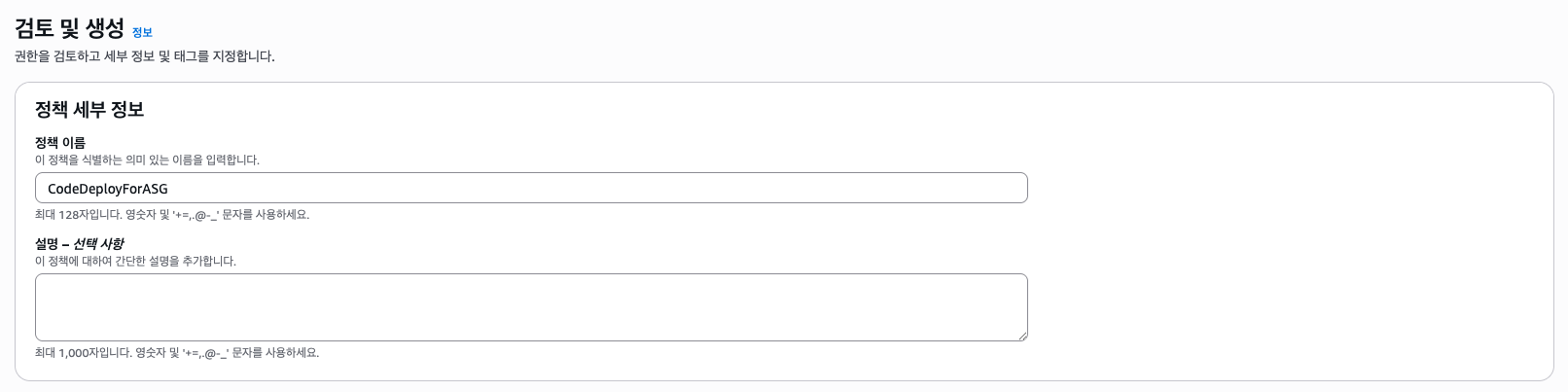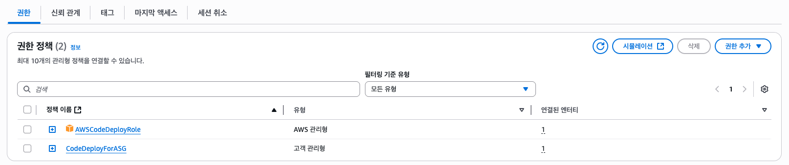 EC2와 CodeDeploy에 붙일 IAM을 먼저 만들어주는게 편한데, 전 포스팅에서 만들어둔 IAM이 있으므로 생략한다.