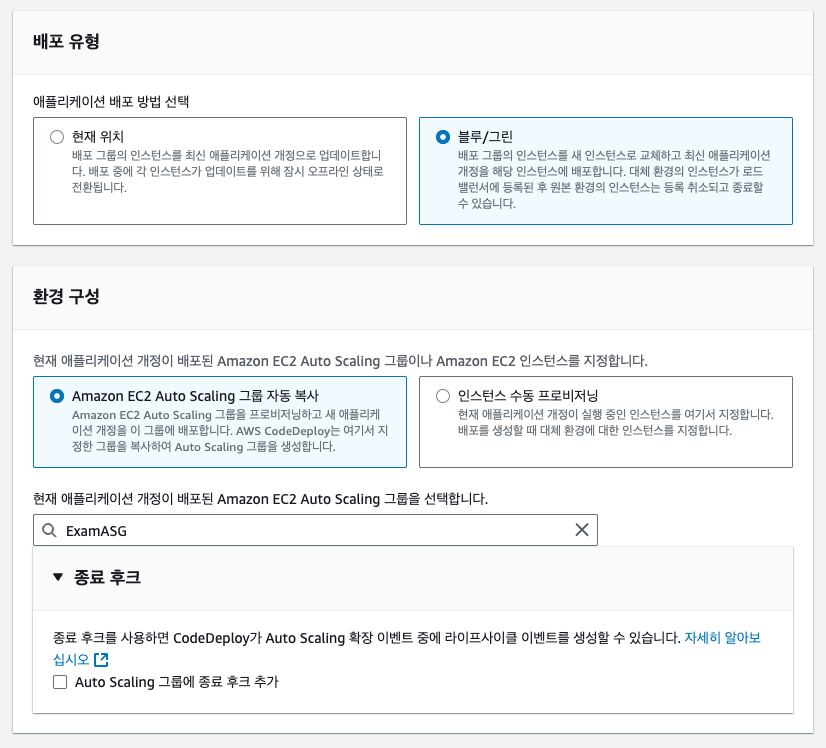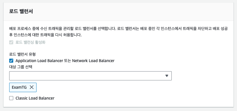 그리고 오토스케일링 그룹을 선택한다. 이러면 업데이트 시 오토스케일링 단위로 Blue, Green으로 나뉘고 업데이트되며 업데이트 후엔 자동으로 Green 쪽으로 트래픽이 전환된다.