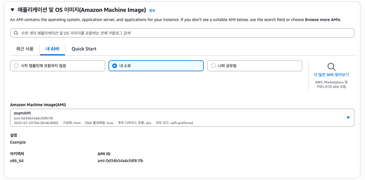 다음으로 오토스케일링 그룹의 시작 템플릿에 적용할 AMI 이미지를 만들어보자. 먼저 EC2 하나를 생성한다. 원활한 진행을 위해 퍼블릭 서브넷에 배치하고 퍼블릭 IP 할당을 하자. 꼭 만들어둔 VPC에 생성하지 않아도 된다.