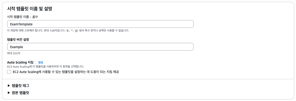 그리고 오토스케일링 그룹에 사용할 시작 템플릿을 만들어보자.