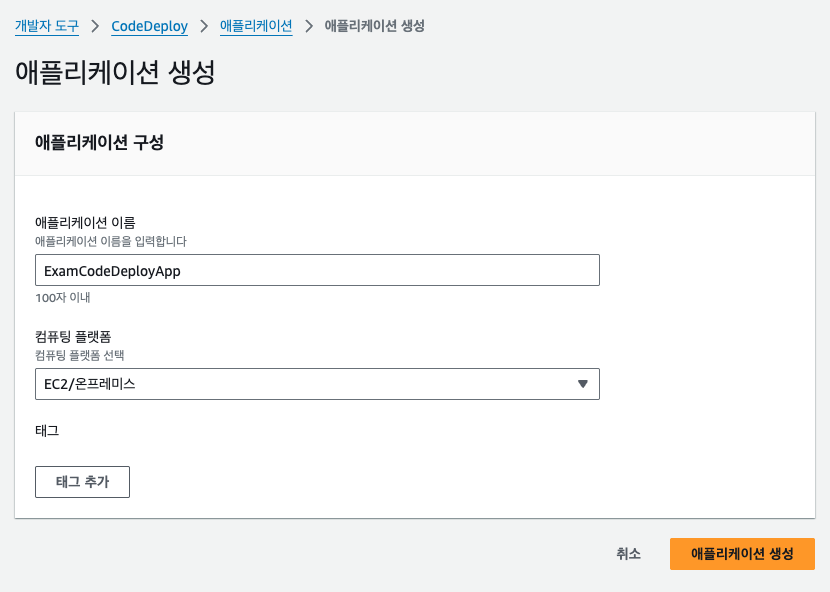 애플리케이션을 만드는데 전 포스팅과 마찬가지로 EC2/온프레미스를 선택한다.