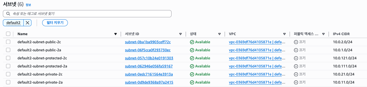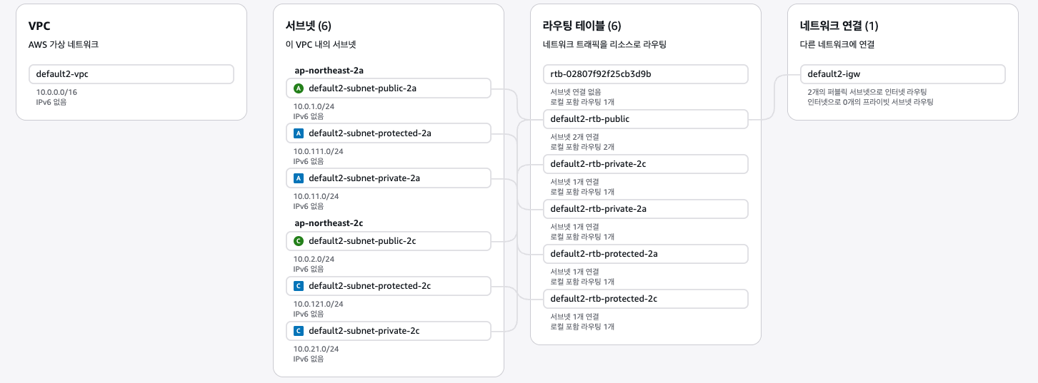 각 서브넷의 가용 영역은 따로 명시되어 있지는 않지만 ap-northeast-2a와 ap-northeast-2c로 통일하고, 아키텍처에 명시된 서브넷 CIDR을 따르도록 한다. (Bastion Host를 올려두지 않는 유휴 Public 서브넷 하나는 생성만 해둘 것)