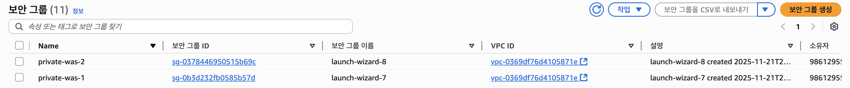 추가적으로 두 개의 WAS에 연결된 보안 그룹의 이름을 구분하기 쉽도록 수정해두자.