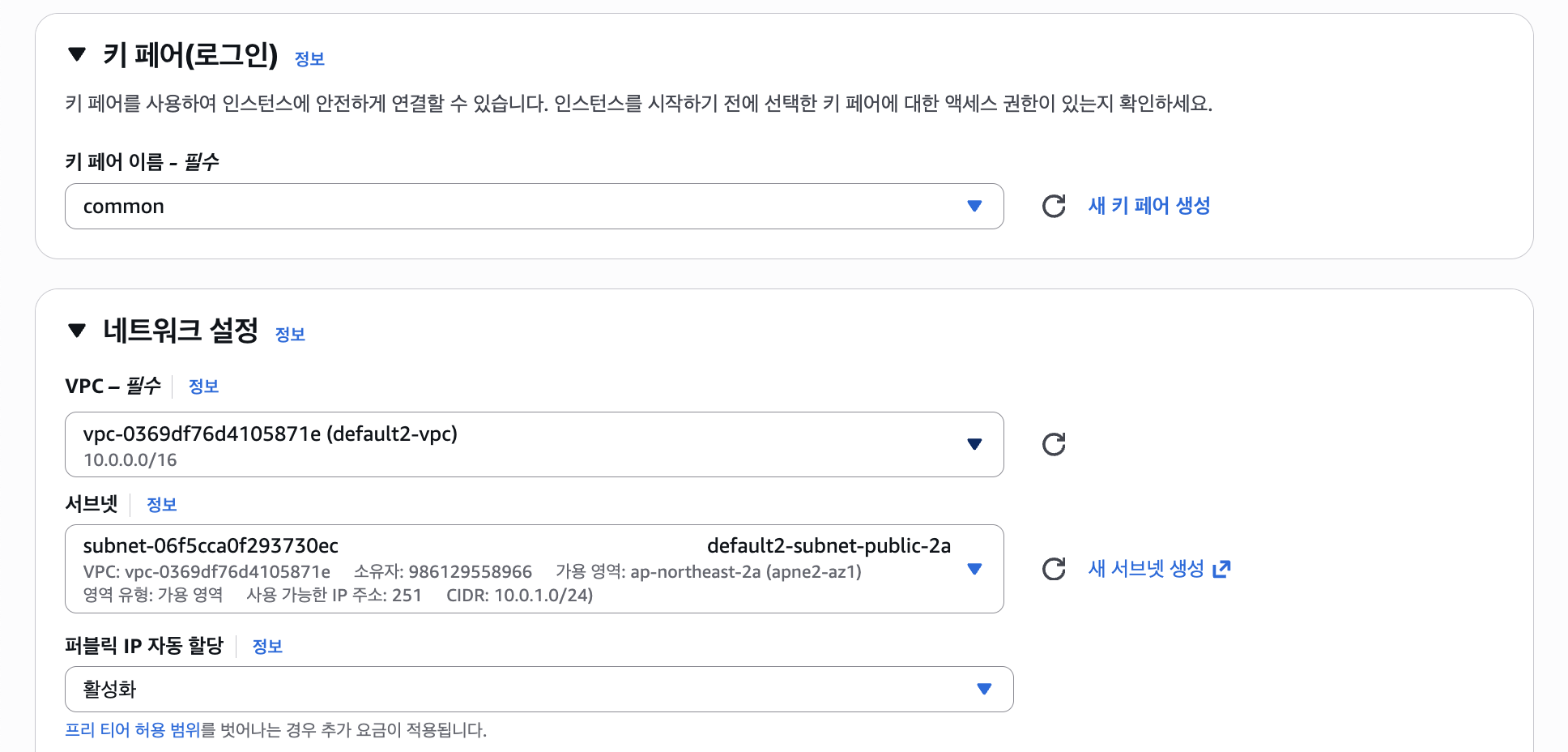 보안 그룹은 80번 포트를 허용한 보안 그룹을 만들고 선택한다.