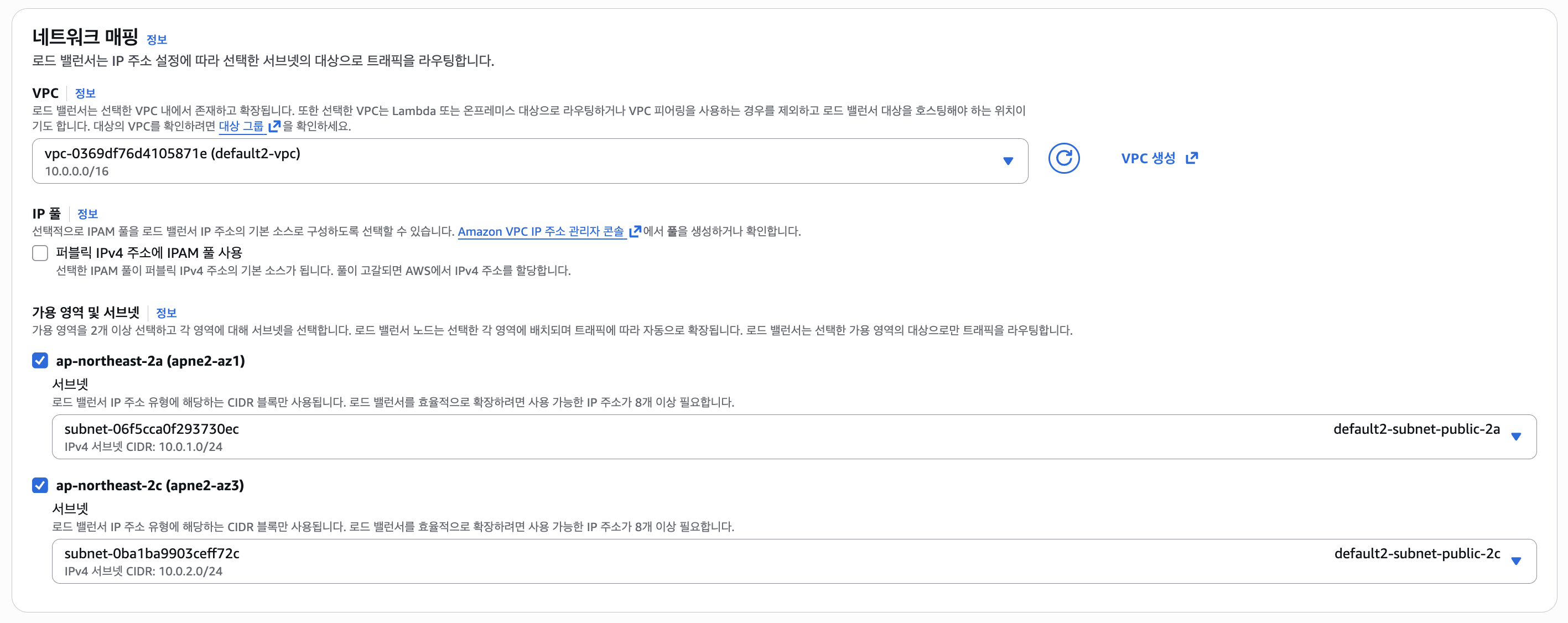ALB가 배치될 서브넷은 두 개의 Public 서브넷을 선택해주겠다.