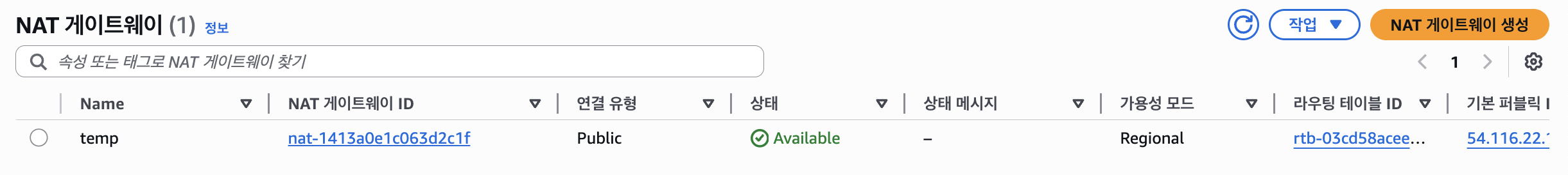 모든 구성이 끝났다면 NAT Gateway를 제거해도 될 것이다.