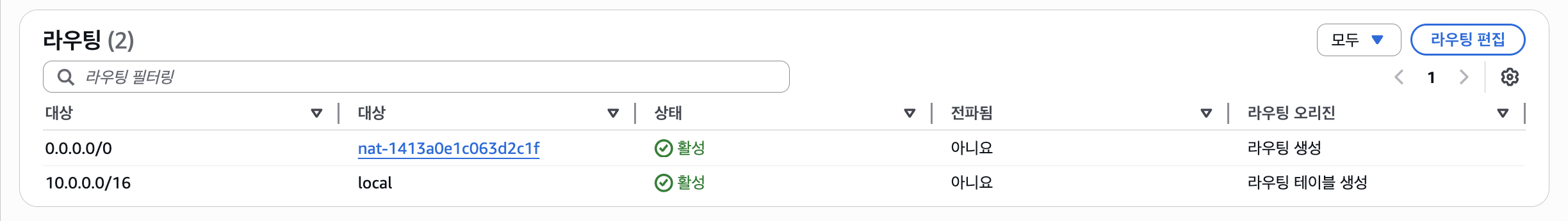 0.0.0.0(인터넷) 라우팅을 만든 NAT Gateway로 설정하면 된다.