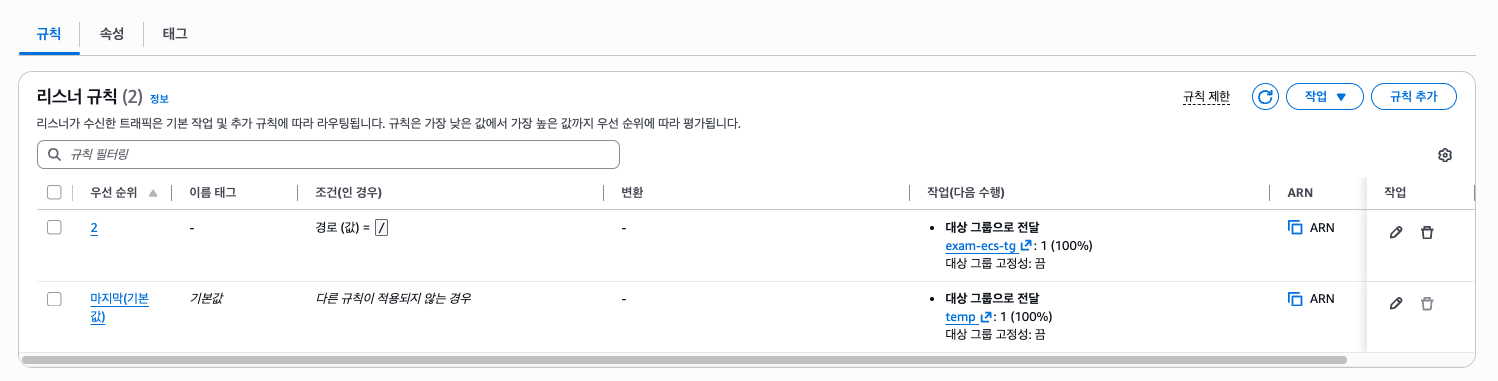 그럼 ALB 리스너 규칙에 이런식으로 되는데, 규칙을 편집하여 임시로 만들어둔 대상 그룹을 편집하자.