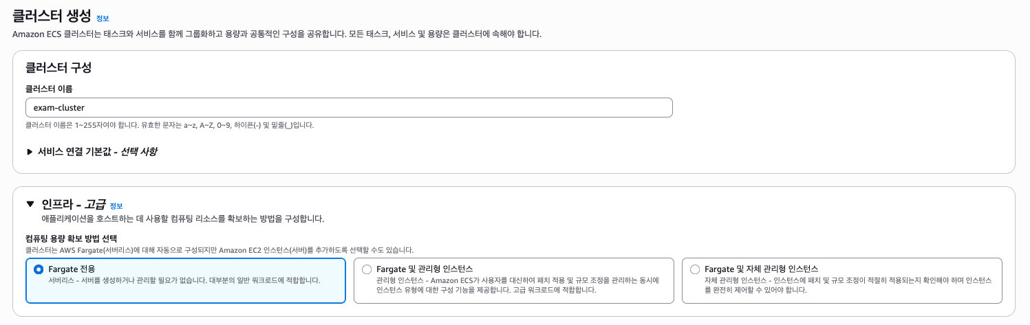 이제 ECS 클러스터 및 ECS Fargate를 구성하고 동시에 ALB 대상 그룹을 구성해보겠다.