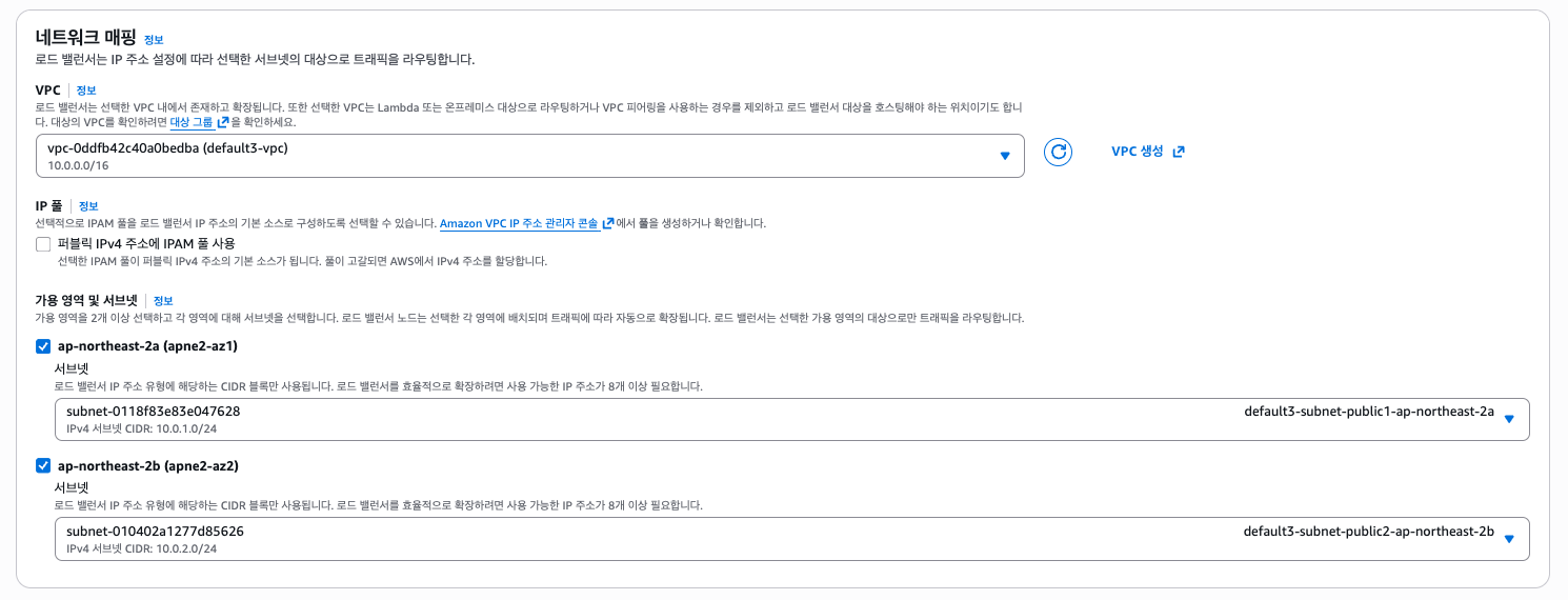 네트워크 매핑은 각 AZ의 Public Subnet을 선택한다.