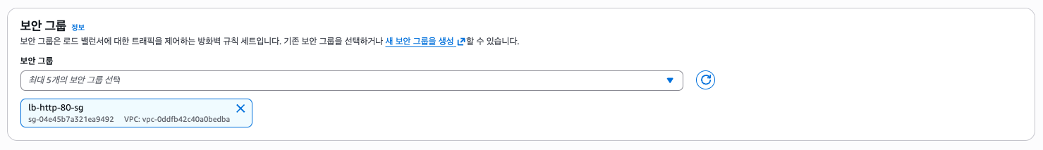 보안 그룹은 HTTP 80번 포트를 허용하는 보안 그룹을 만들고 선택하였다.
