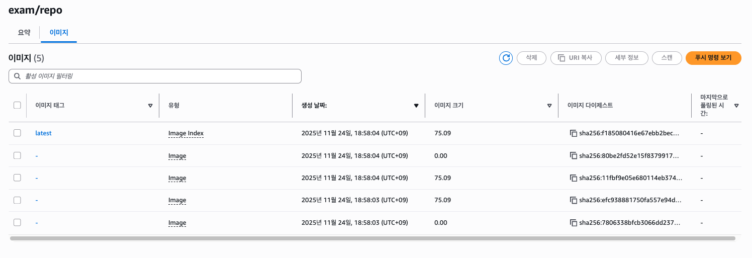 이미지 빌드 및 ECR Push는 이상 마무리한다.