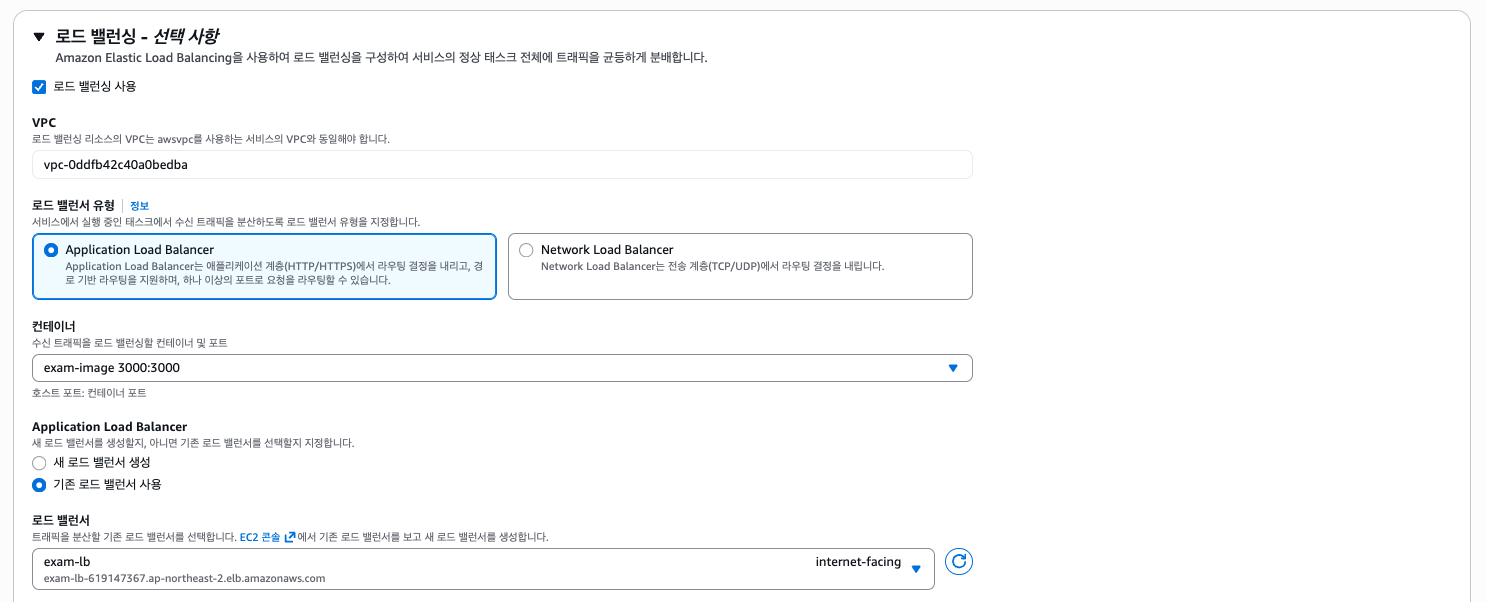 로드밸런서는 아까 만들어둔 ALB를 선택한다.
