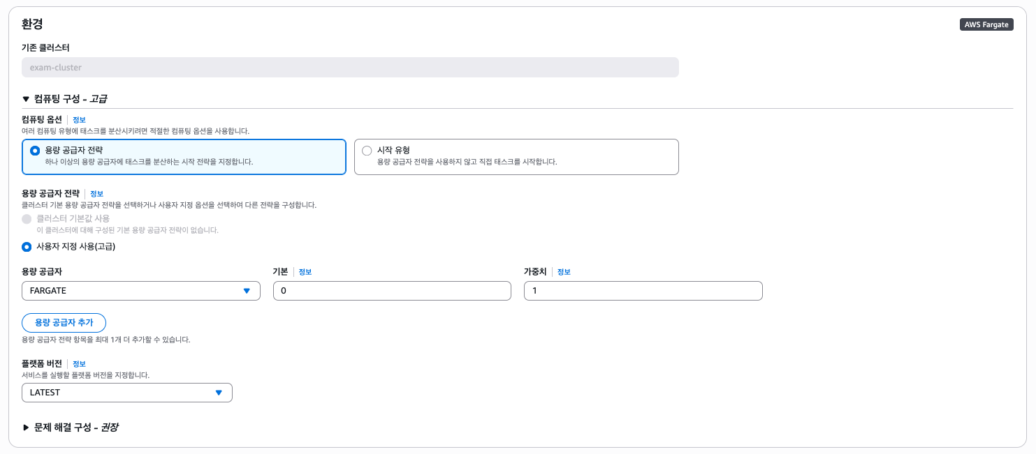 환경은 Spot을 선택해도 무방하다. 잠시 켜두고 끌 Task이기 때문에 Spot은 굳이 사용하지 않았다.