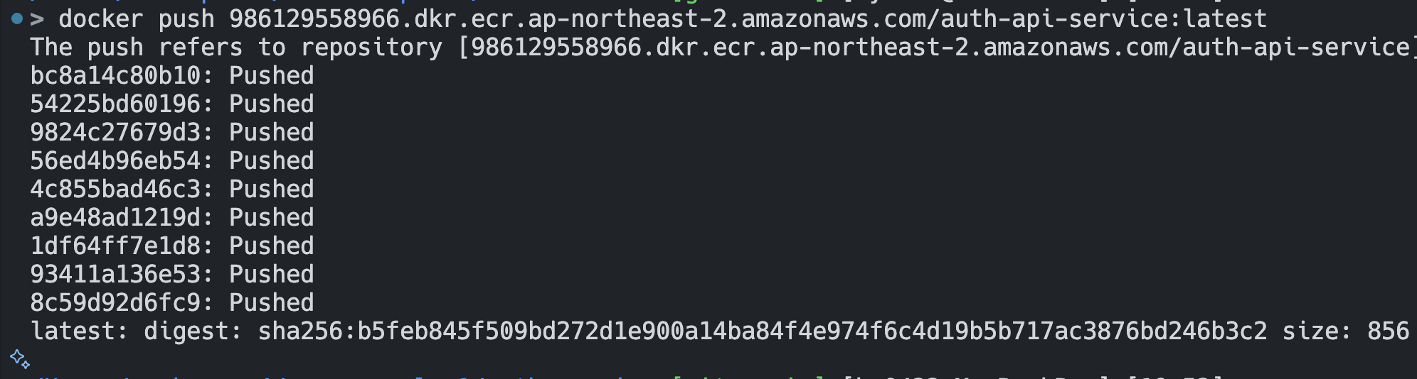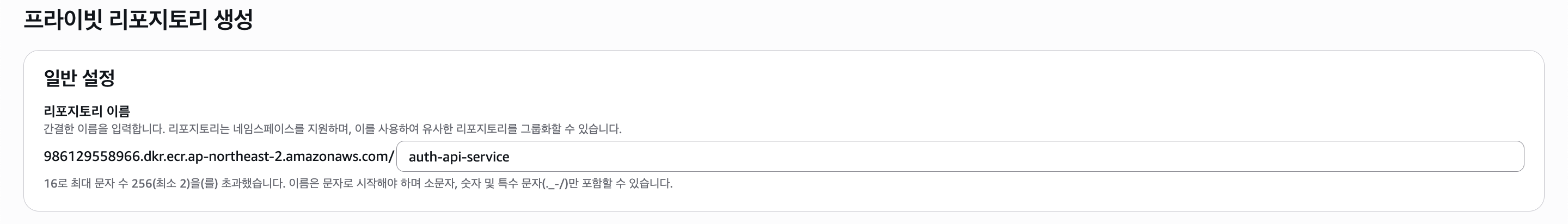Auth API Service 이미지를 올려둘 ECR을 만들고 푸시하자.