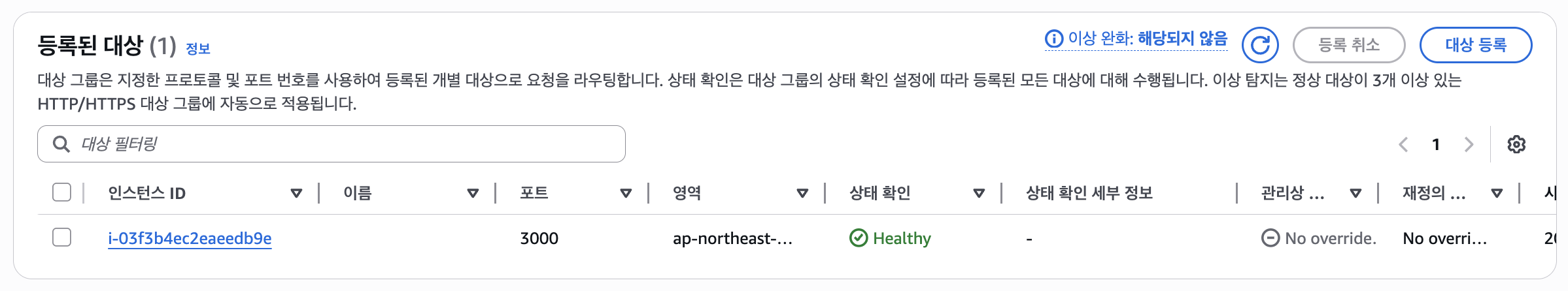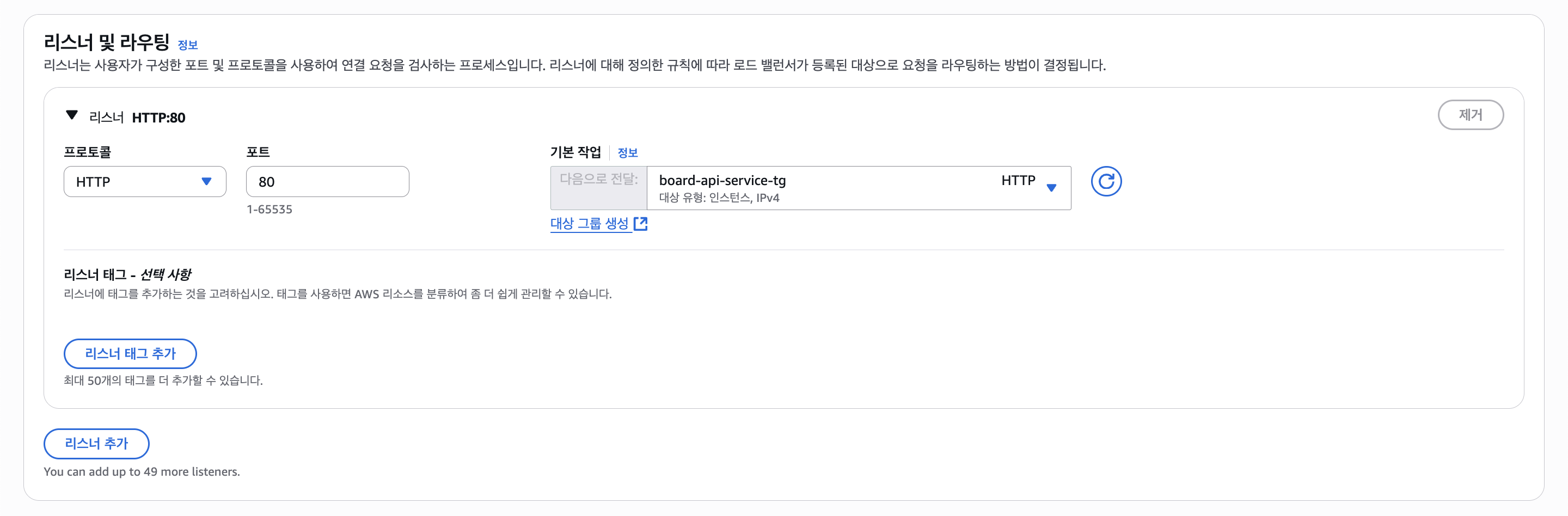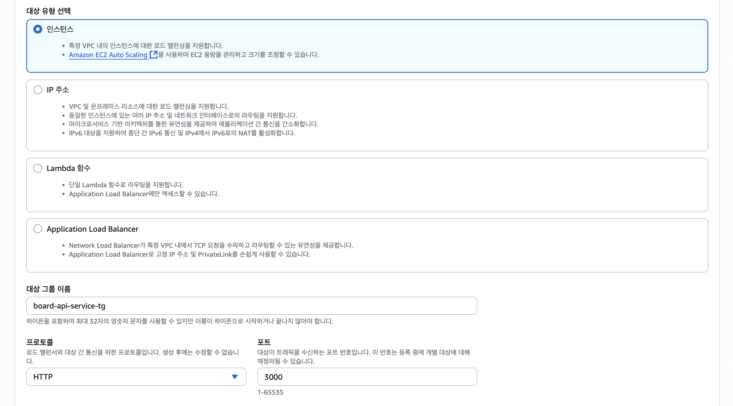 대상 그룹은 Board API Service 용으로 만들어둔다. 나중에 EC2 ASG 설정 시 연결만 하면 된다.