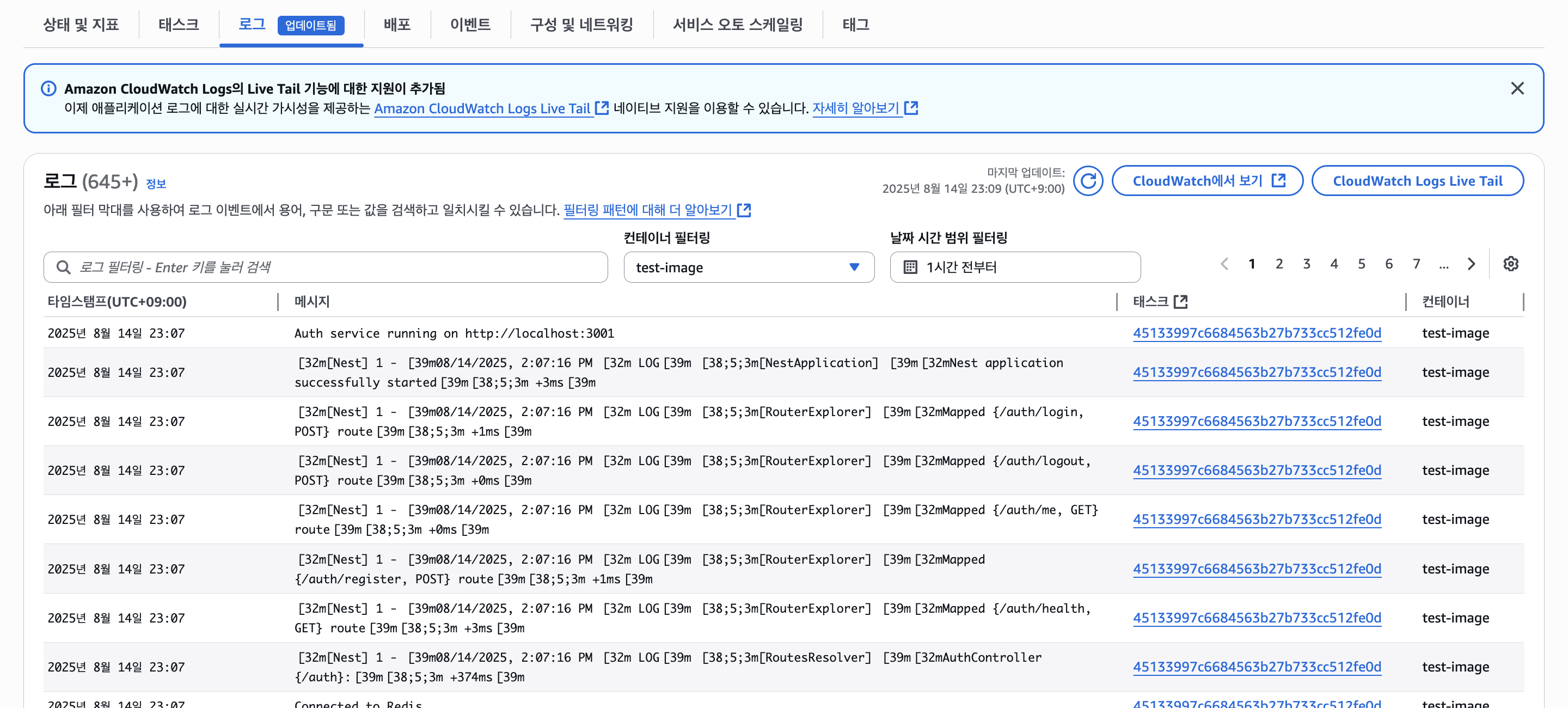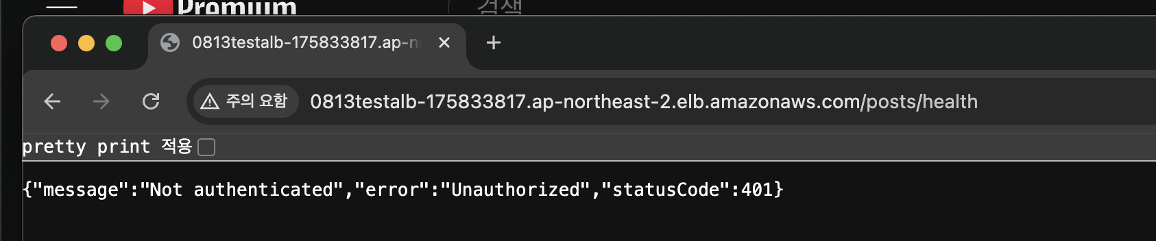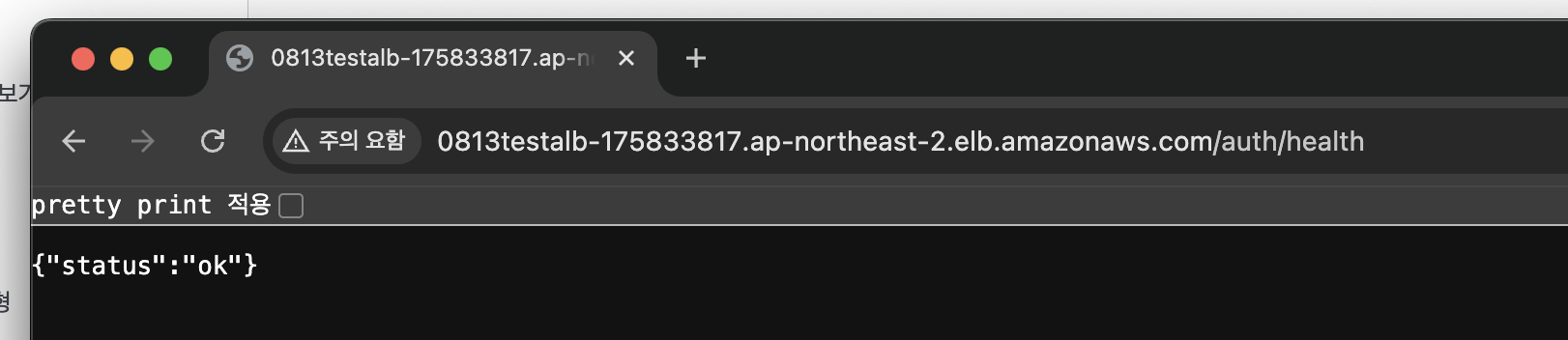 잘 나온다. 다만 코드에 실수로 모든 경로에 대해 인증 여부를 체크해서 401이 반환되는 문제가 있는데, 일단 작동하긴 하니 넘어가자.. 대상 그룹에서 Health Check에서 정상 반환 코드를 401로 설정해주면 임시로 되긴한다.