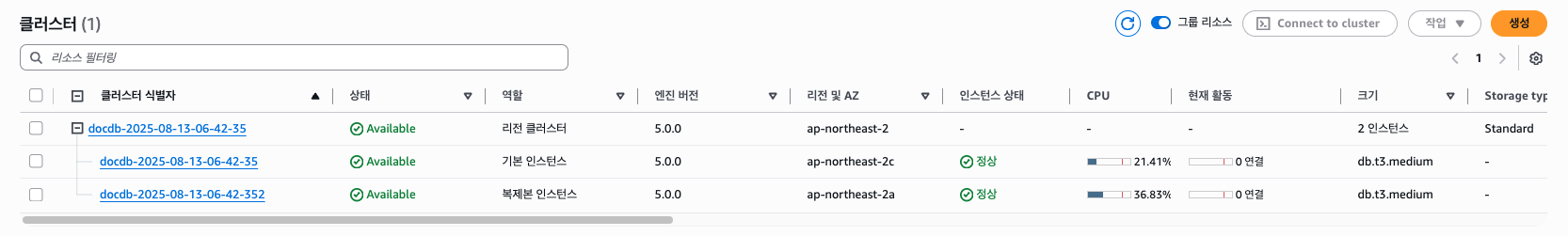이제 데이터베이스 설정을 해보자. 먼저 DocumentDB 구축부터 해보겠다. Protected Subnet A에 Primary DB를 두고, Protected Subnet B에 ReadOnly 레플리카를 두는 형식으로 해보겠다.