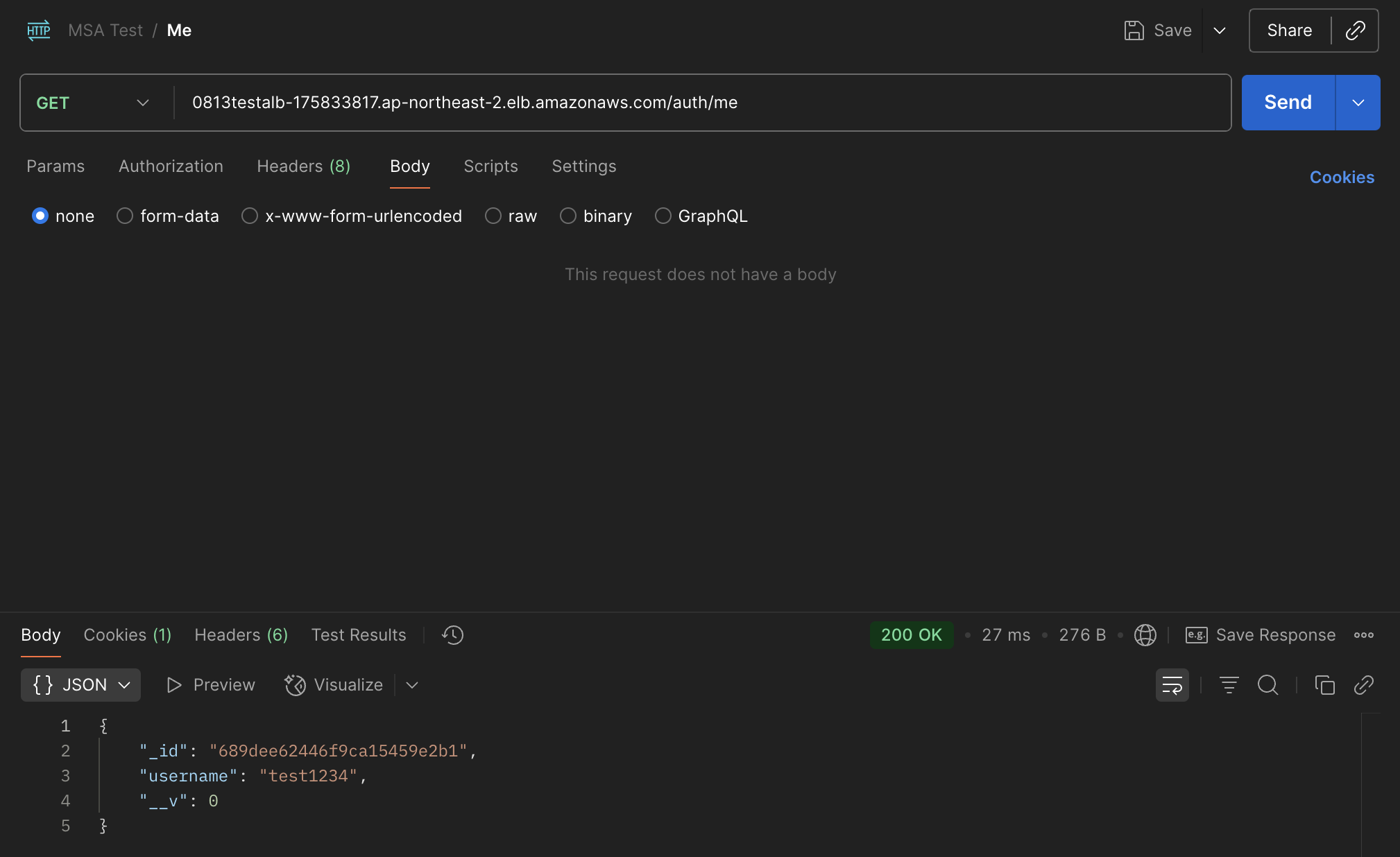 잘 작동한다. 이로써 Auth API Service도 ECS Fargate에 배포를 완료하였다.