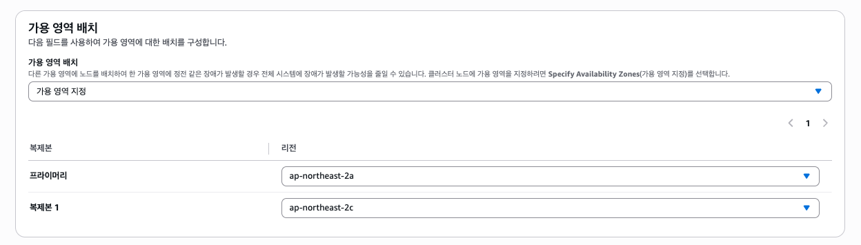 그리고 마지막으로 가용 영역 배치에선 Primary는 2a, Replica는 2c에 배치해뒀다. (어디에 두던 상관은 없음)