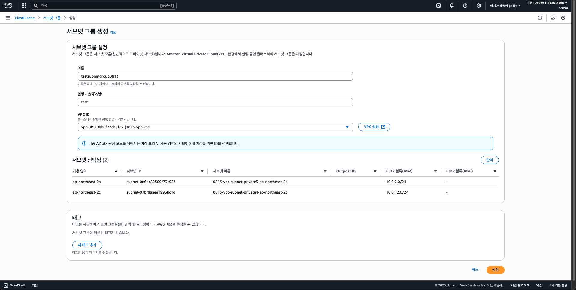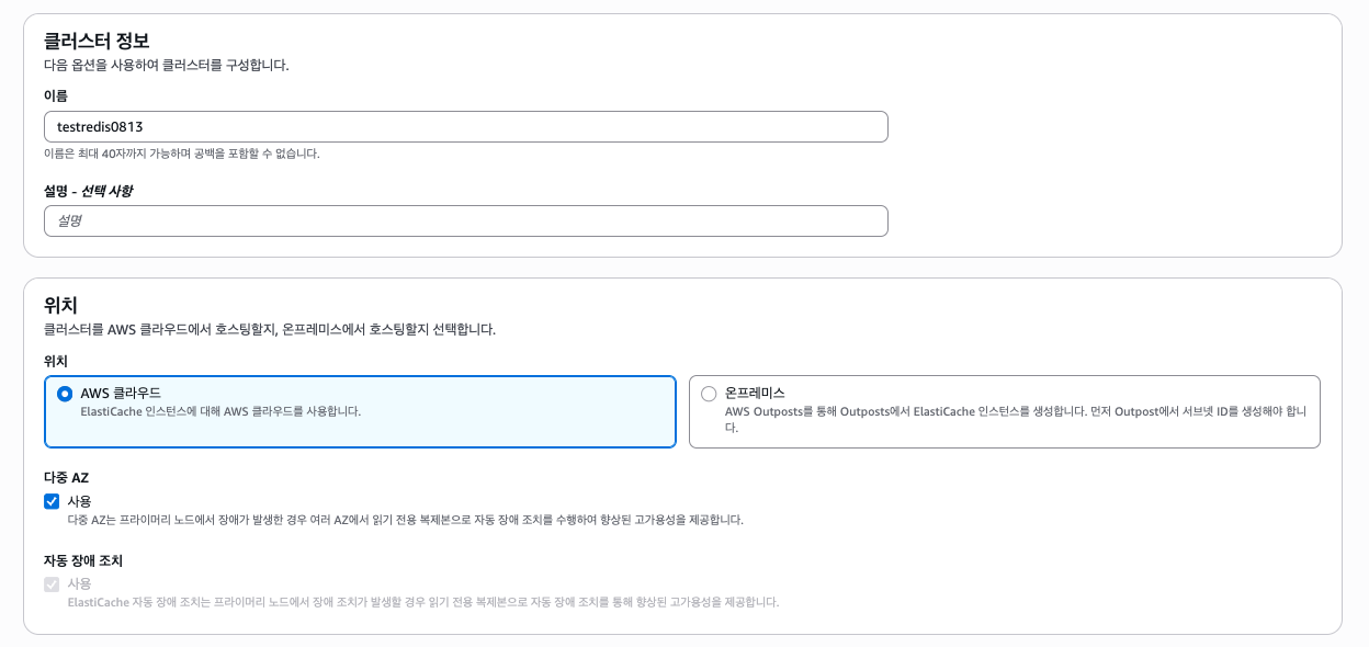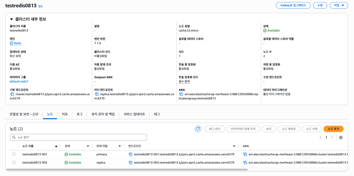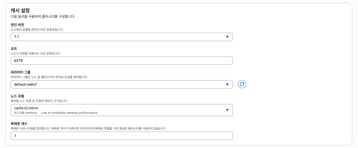 ElastiCache도 서브넷 그룹을 만들어야 하는데, 기존 서브넷 그룹을 그대로 쓸 수 있으니 넘어가자.