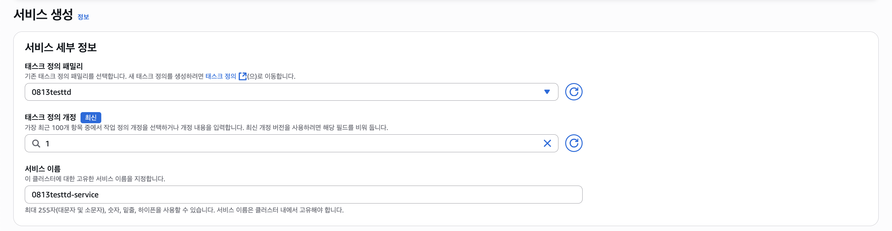 그리고 로드밸런싱 설정도 해주었다. 나머지 설정은 옵션으로 하고, 서비스를 생성해보자.