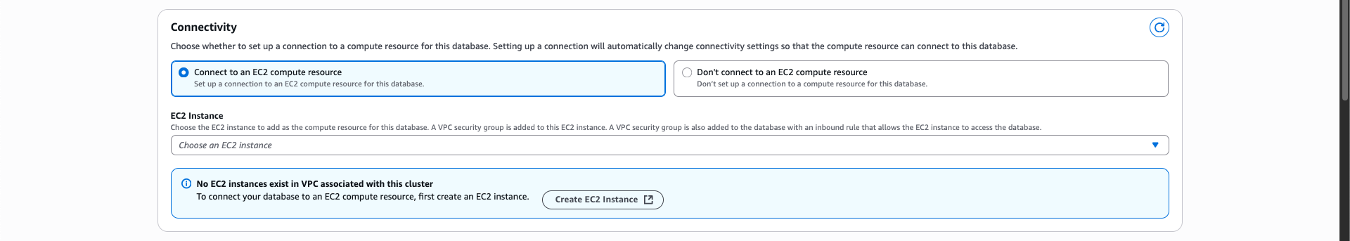 서브넷 그룹 설정은 기존에 만들어뒀던 그룹으로 선택한다.