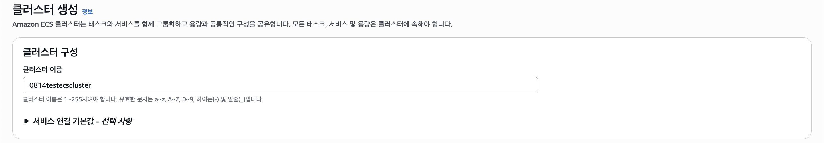 환경변수도 적당히 넣어줬다. 이제 ECS Fargate 클러스터를 만들어보자.