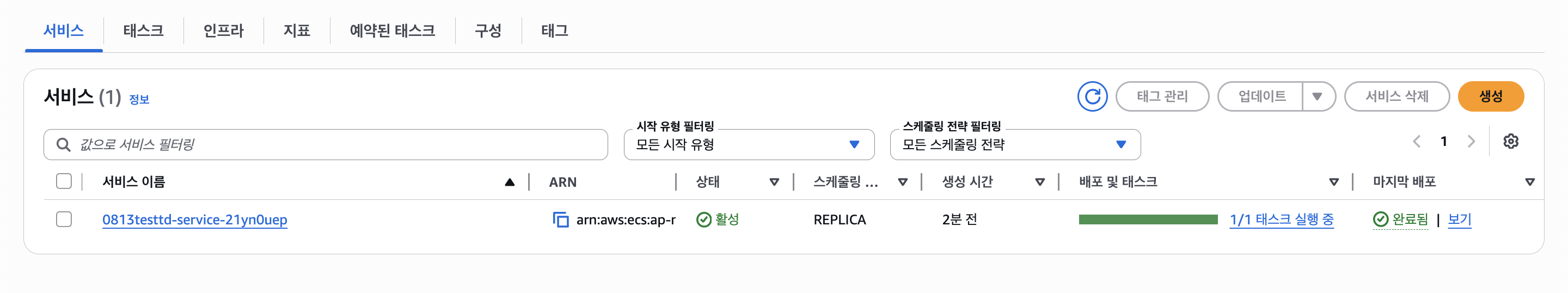 그리고 만든 태스크 정의를 사용하는 서비스를 만들자.