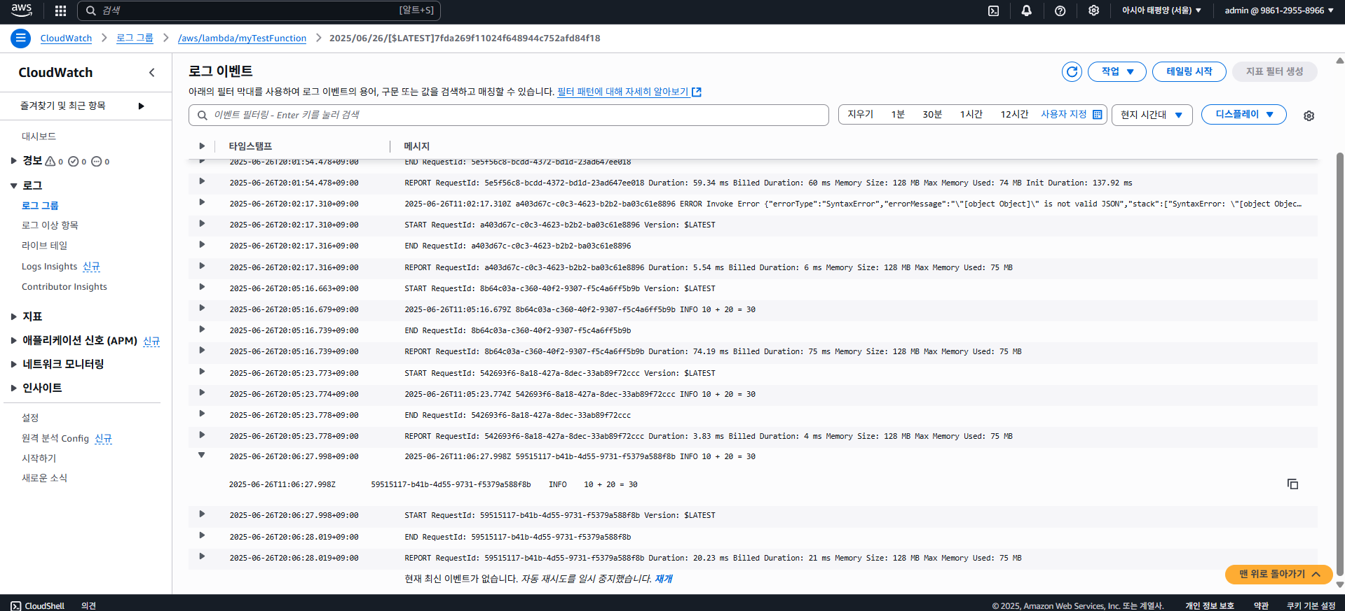람다에 대한 자세한 사용 방법과 내용은 추후 AWS 아키텍쳐 파트에서 더욱 자세히 설명하겠다.