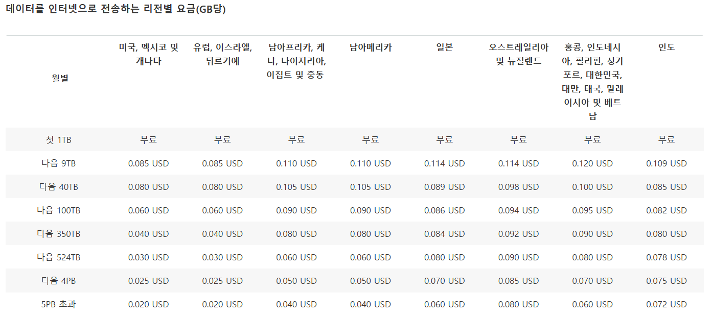 더군다나 위 요금 표에서 볼 수 있드시 데이터 전송량이 많아지면 많아질 수 록 요금이 더 저렴해지기 때문에 오히려 이득이라 볼 수 있다.