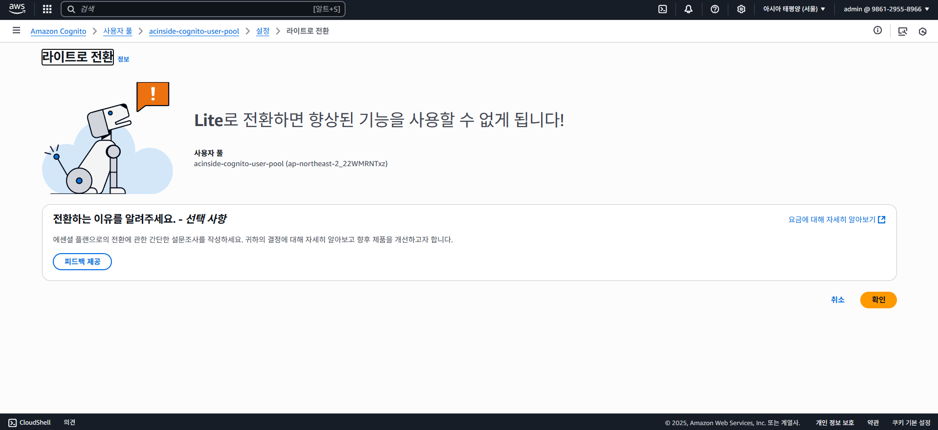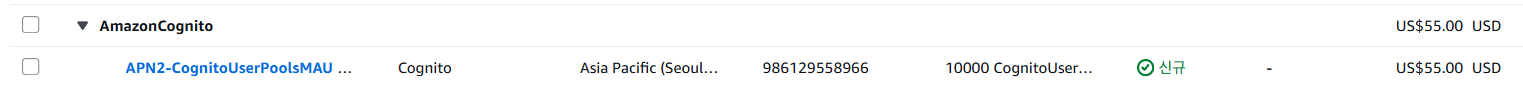 Cognito는 첫 10,000 MAU는 무료로 제공해주는데, 때문에 Lite 기준으로 10,000 MAU만 계산되어 55달러, 한화 약 7만 4천원 정도가 나온다.
