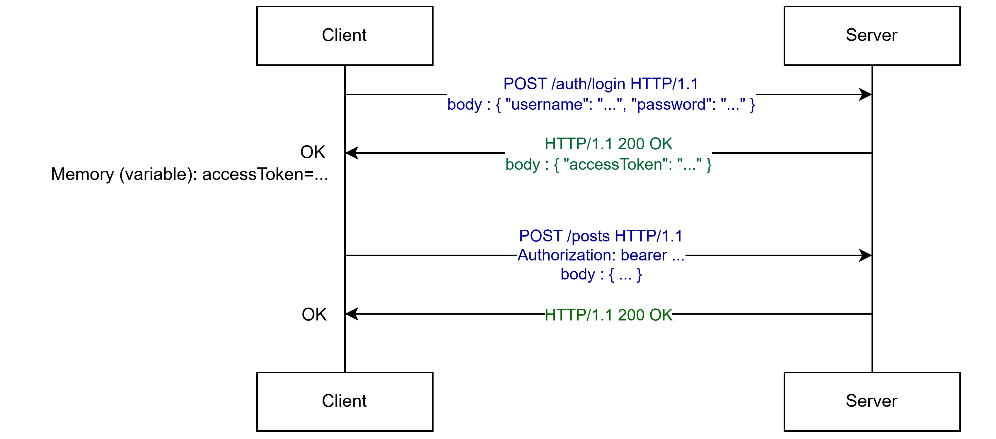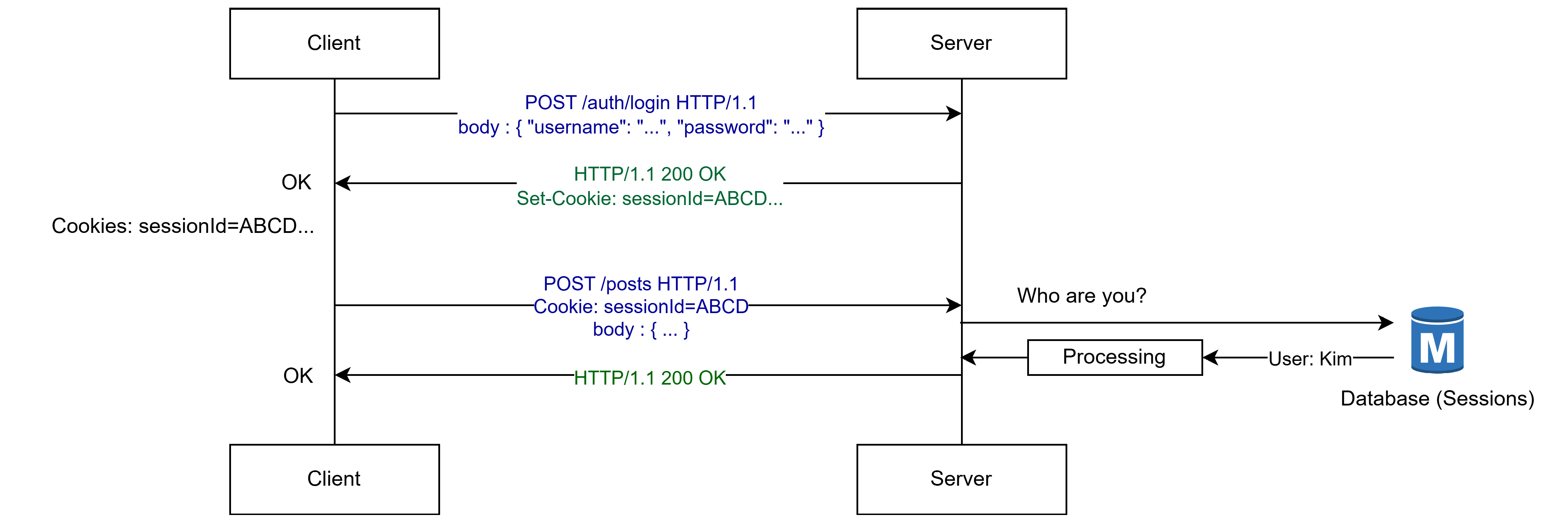 만약 인증 등의 상태 저장이 필요할 경우, 외부의 DB를 따로 사용하거나 JWT 방식의 인증을 사용한다. (대부분 후자)