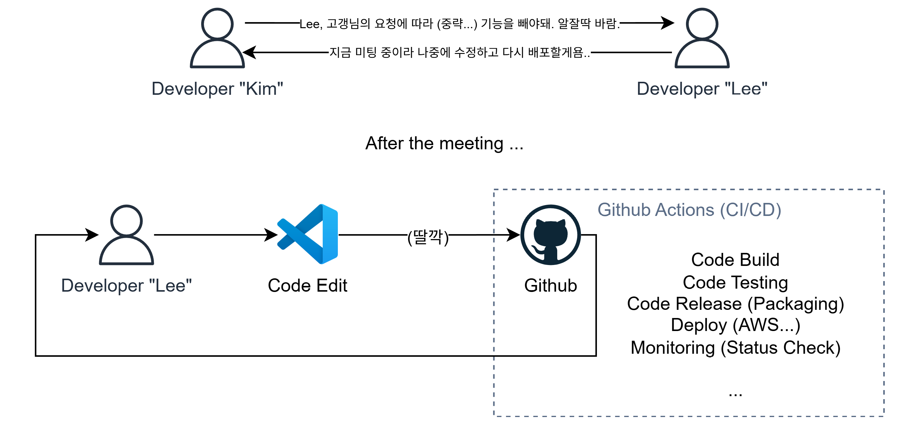 하지만 그럼에도 여전히 OS나 런타임 등의 환경은 개발자가 관리해야 되고,