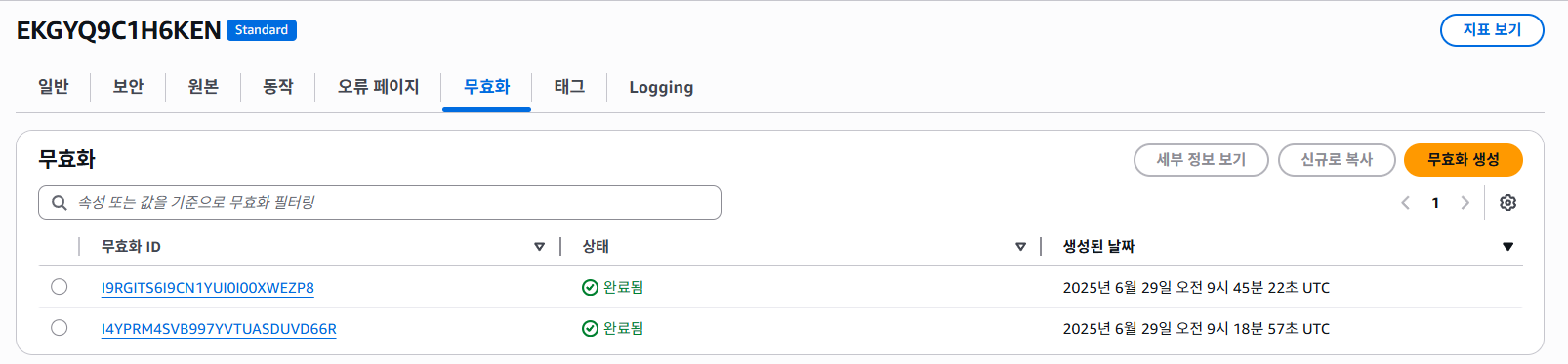 다음으로 CloudFront에서 캐싱 무효화 작업을 해줘야 하는데, 그래야 곧바로 변경 사항이 적용된 서비스를 이용할 수 있다.