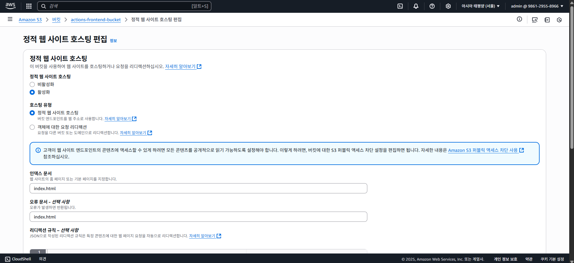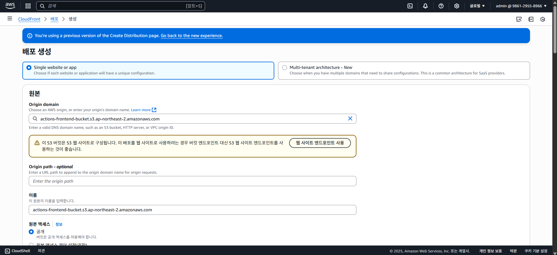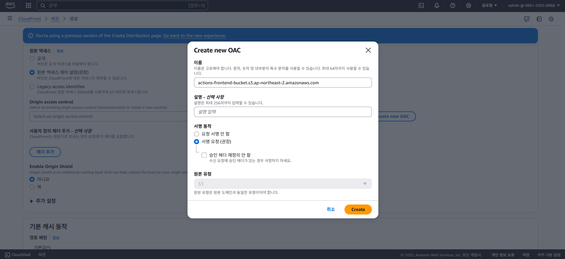 다음으로 프론트엔드 배포인 S3와 CloudFront를 보도록 하자.
