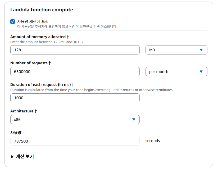 이를 바탕으로 AWS Pricing Calculator를 사용하여 요금을 계산해보겠다.
