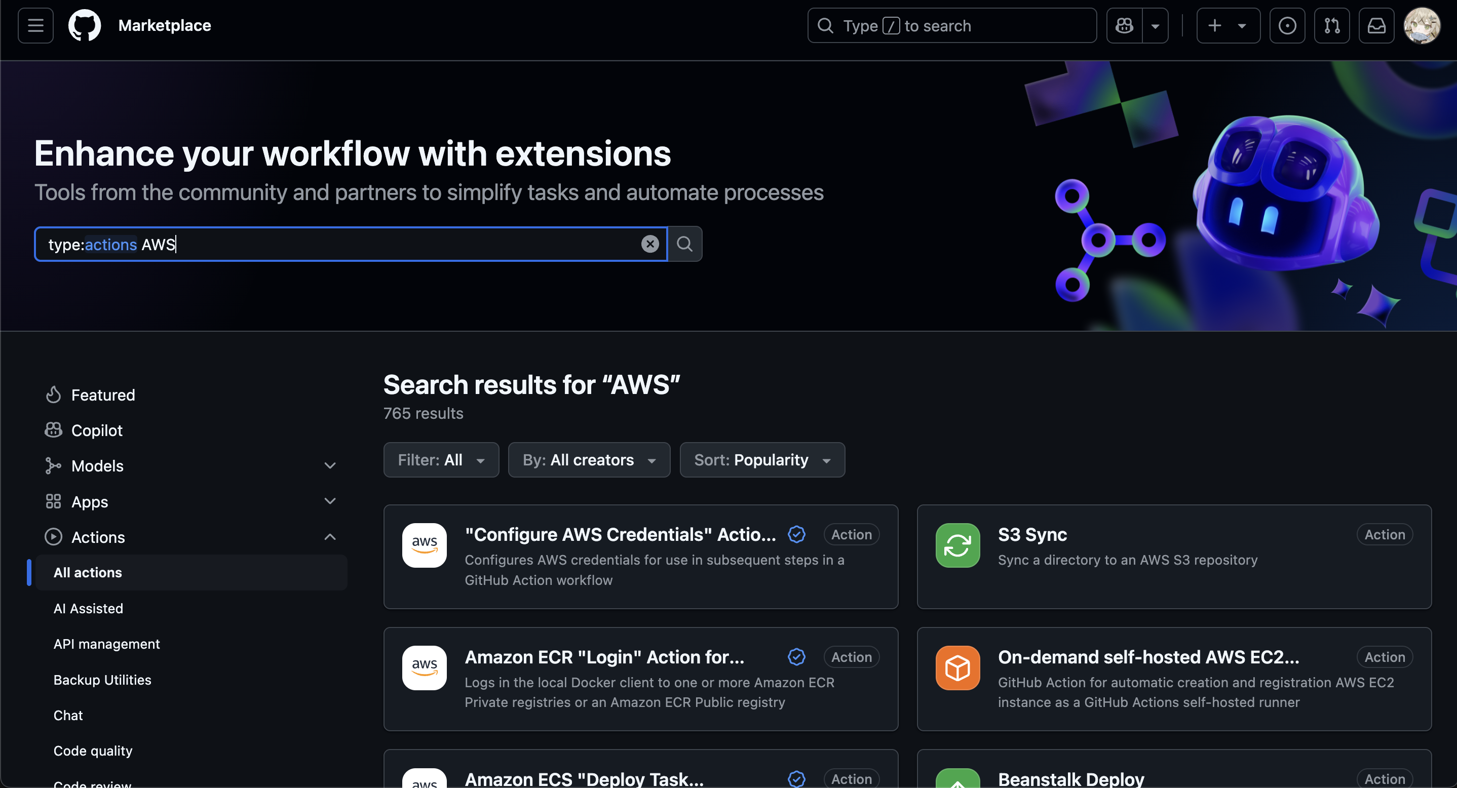 AWS CLI는 Github Actions Runner에 자동으로 설치되어 있다.