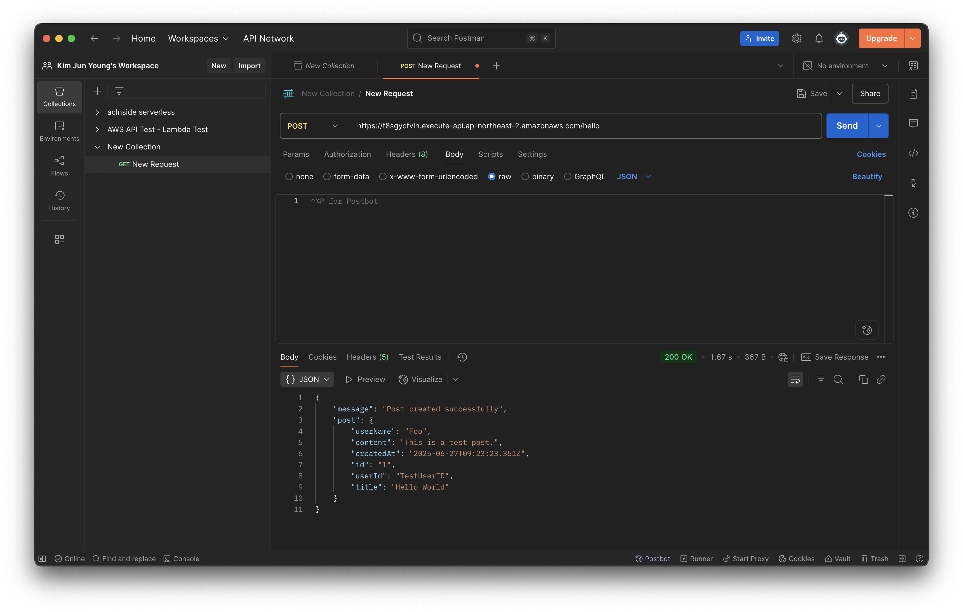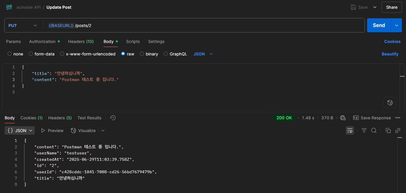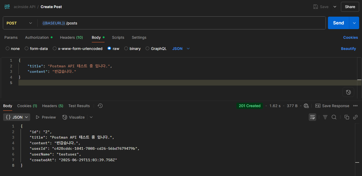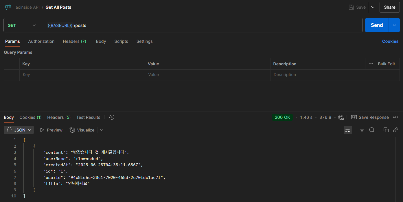 배포하였던 프론트엔드 사이트를 사용하여 간단한 로그인과 게시글 CRUD를 테스트 해볼 수 있었지만 제대로 API 테스트를 위해 Postman을 사용하여 테스트해보겠다.