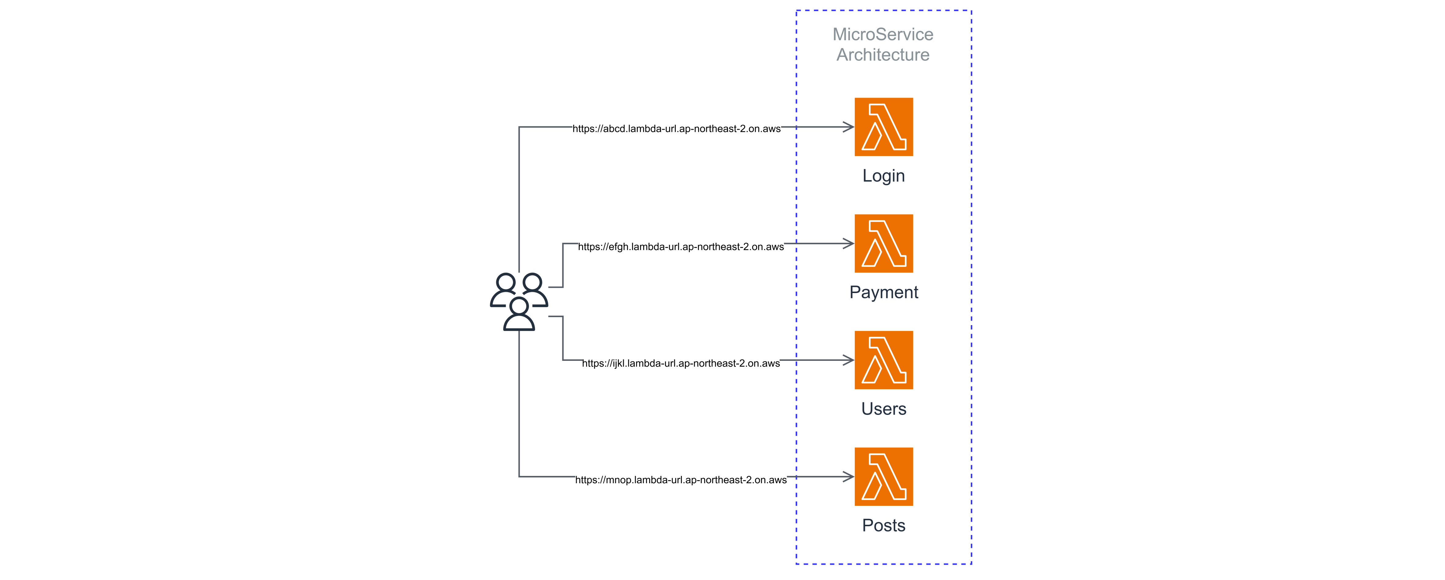 만약 각 람다 함수가 담당하는 서비스가 각각 결제, 로그인, 회원 관리 등의 서비스라면, 위와 같은 아키텍쳐에선 결제를 담당하는 람다 함수 하나만을 수정하고 다시 배포하면 되기 때문에, 다른 서비스들에게 미치는 영향이 (일반적으론)없다.