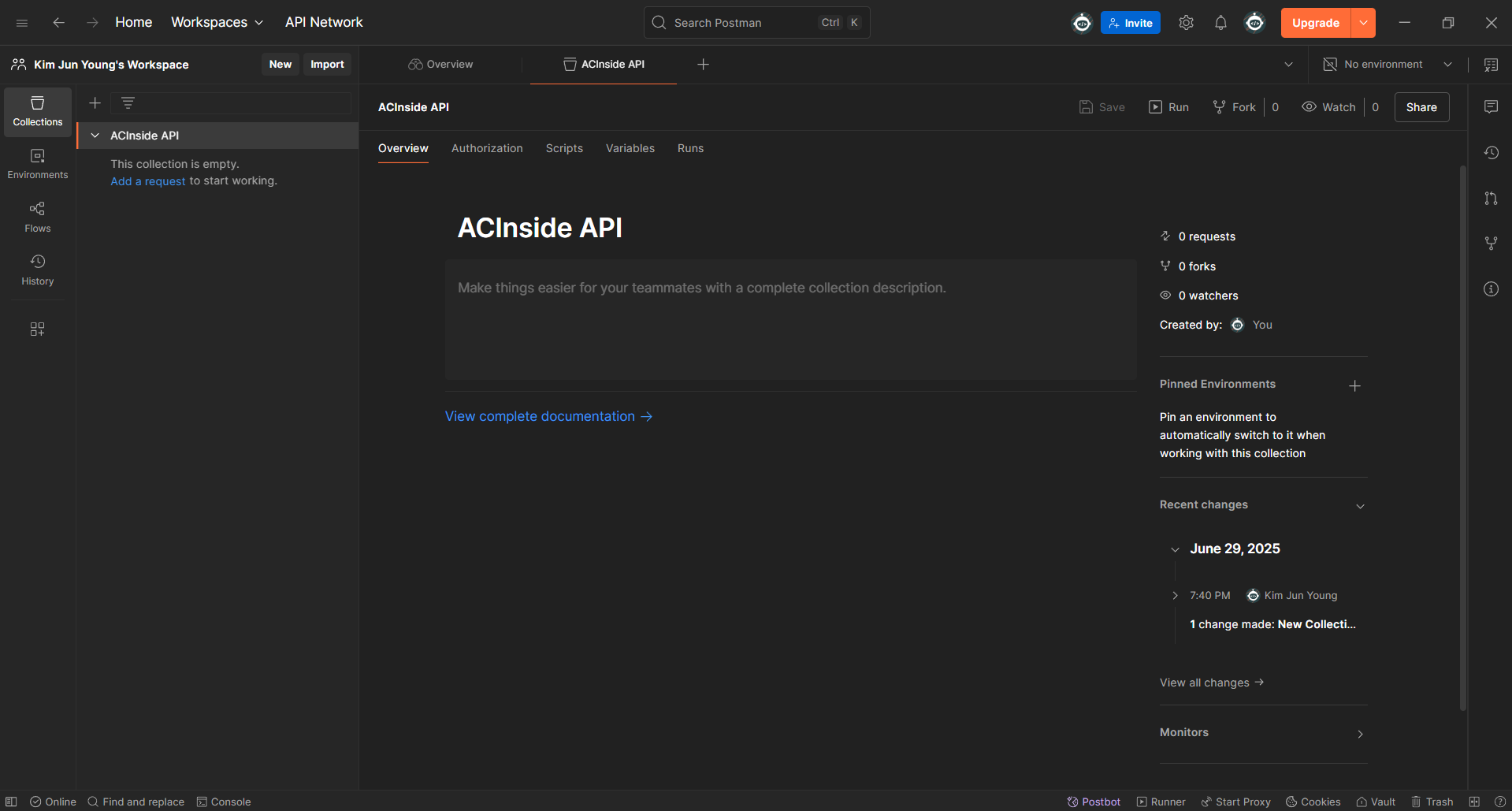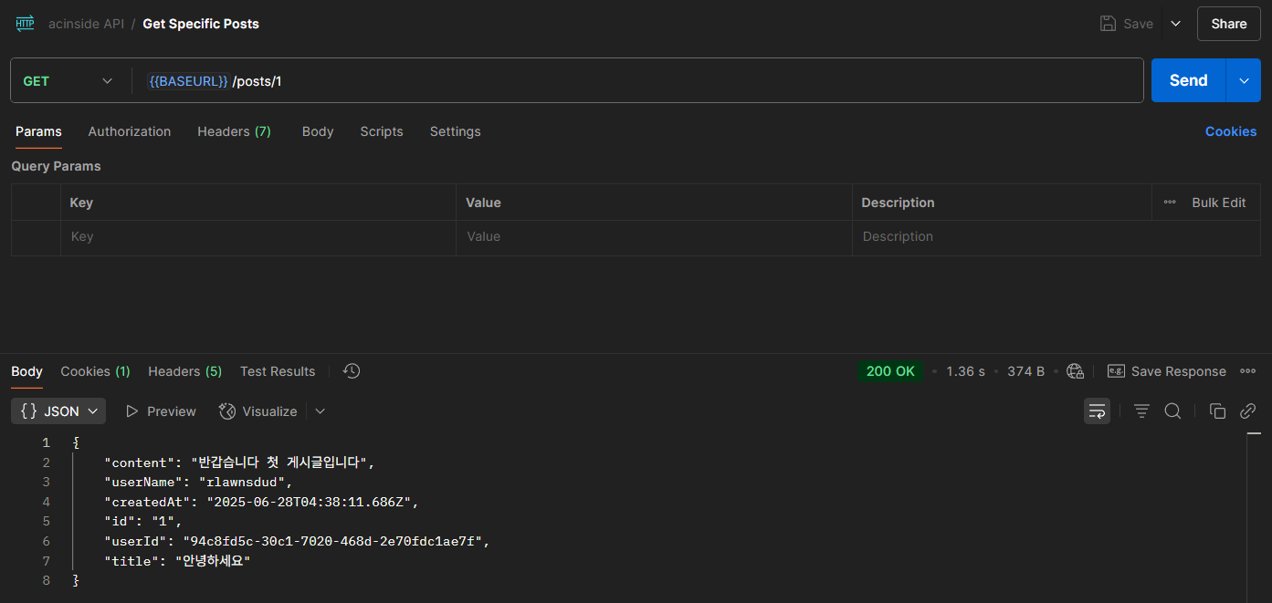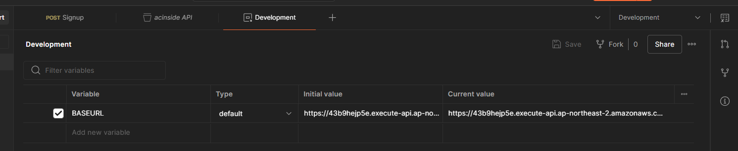 편의를 위해 Base URL을 환경 변수로 만들고 사용하겠다.