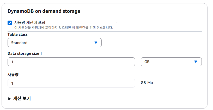 그럼 DynamoDB에 대해선 0.79달러, 한화 약 1100원 정도로 매우 저렴한 것을 볼 수 있다.
