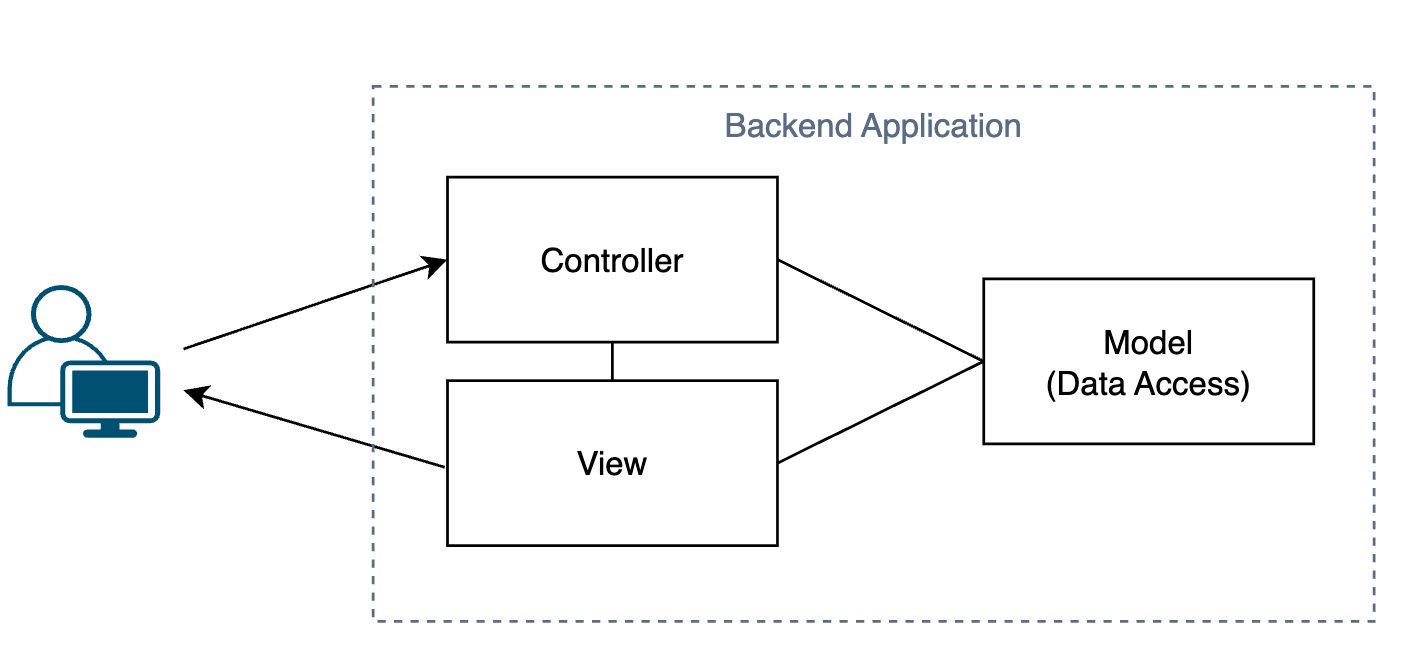 실제 모놀리식 아키텍쳐가 이렇다는건 아니다. 이는 MVC(Model-View-Controller 패턴인데, 모놀리식 아키텍쳐에서 주로 사용되는 백엔드 어플리케이션 패턴이다.