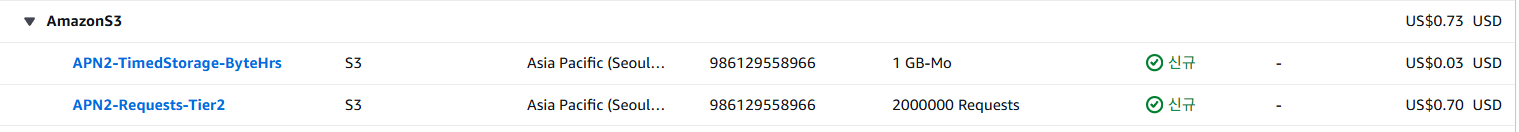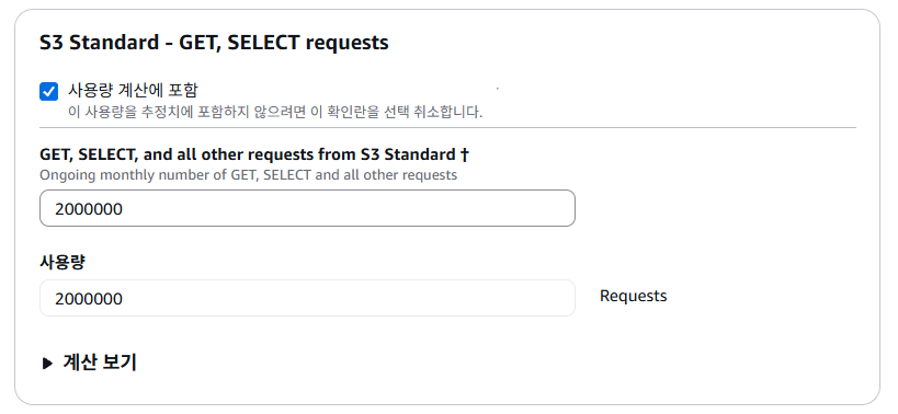 먼저 S3는 리소스 저장 비용과 요청 비용으로 비용을 계산한다. (S3 스탠다드 기준)