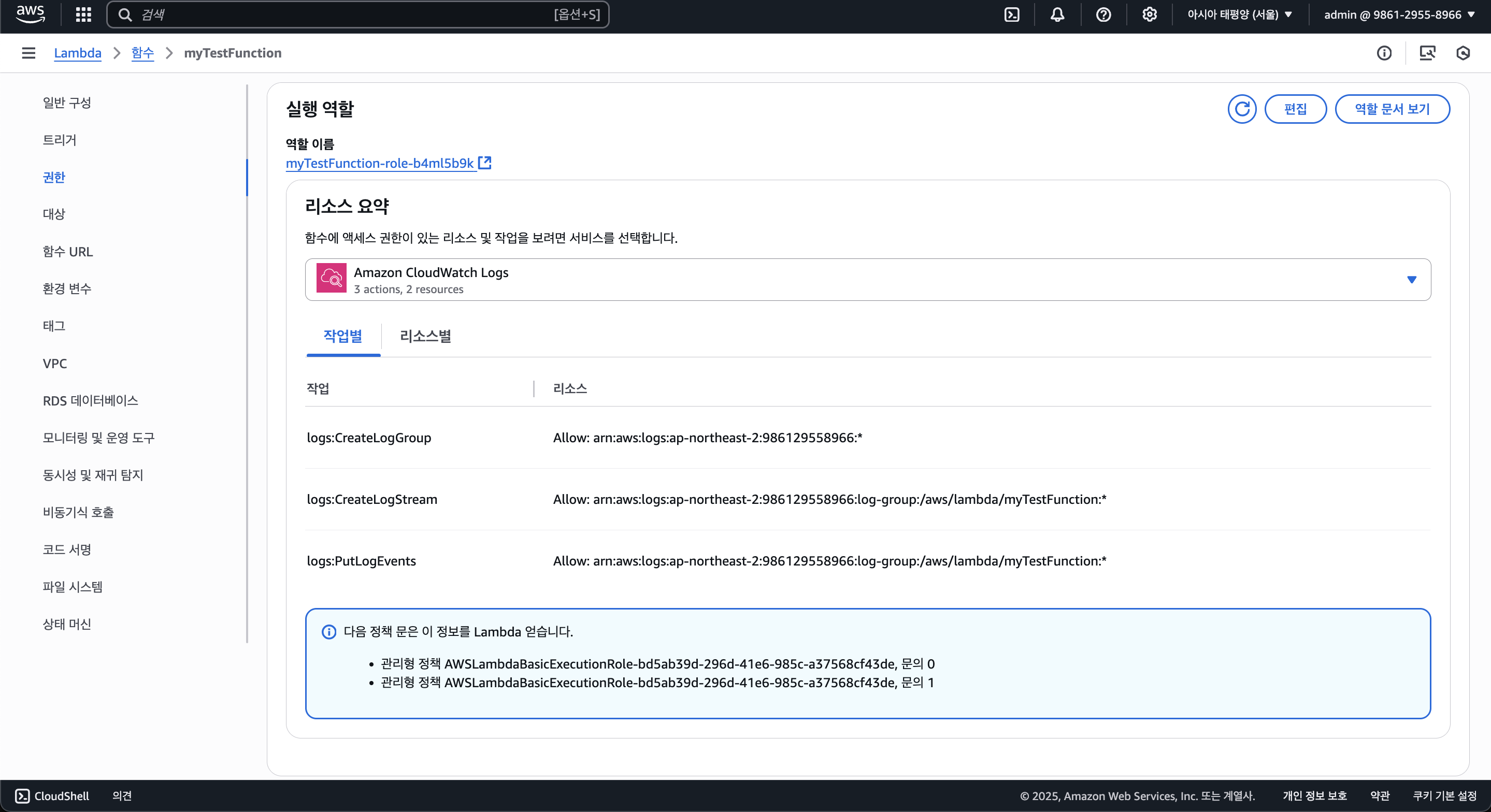 먼저 람다에 대한 설정은 아래와 같다.
