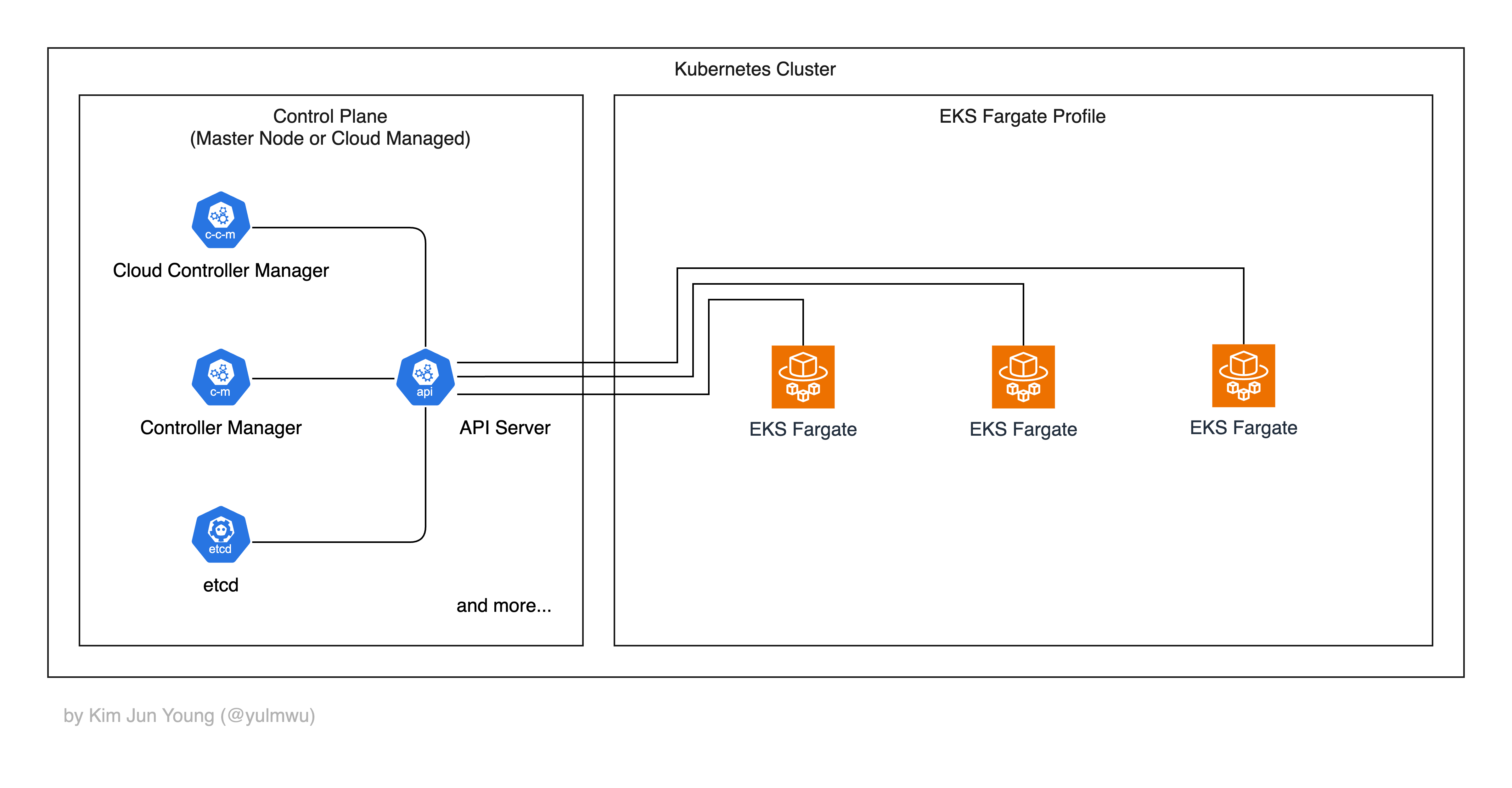 때문에 노드에 설치되는 kubelet과 kube-proxy 등이 설치되지 않고 AWS에서 관리한다.