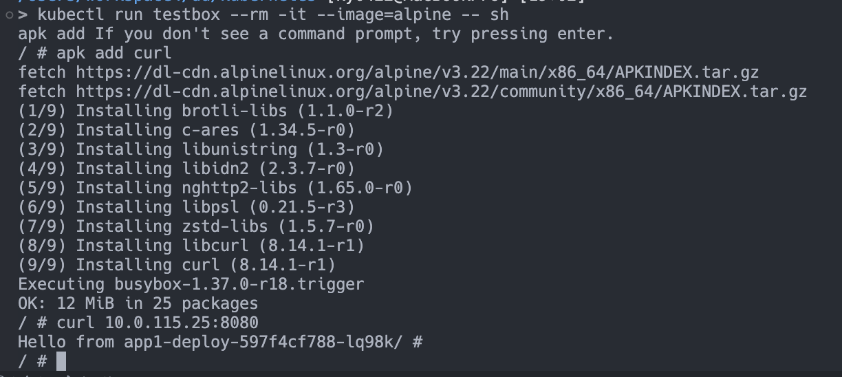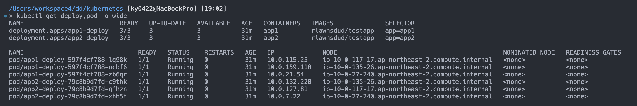 여기선 2개의 app1, app2 Deployment를 만들건데, 서비스 실습은 app1 하나만 사용해보고 Ingress 실습에서 2개의 Deployment를 사용해볼 것이다.