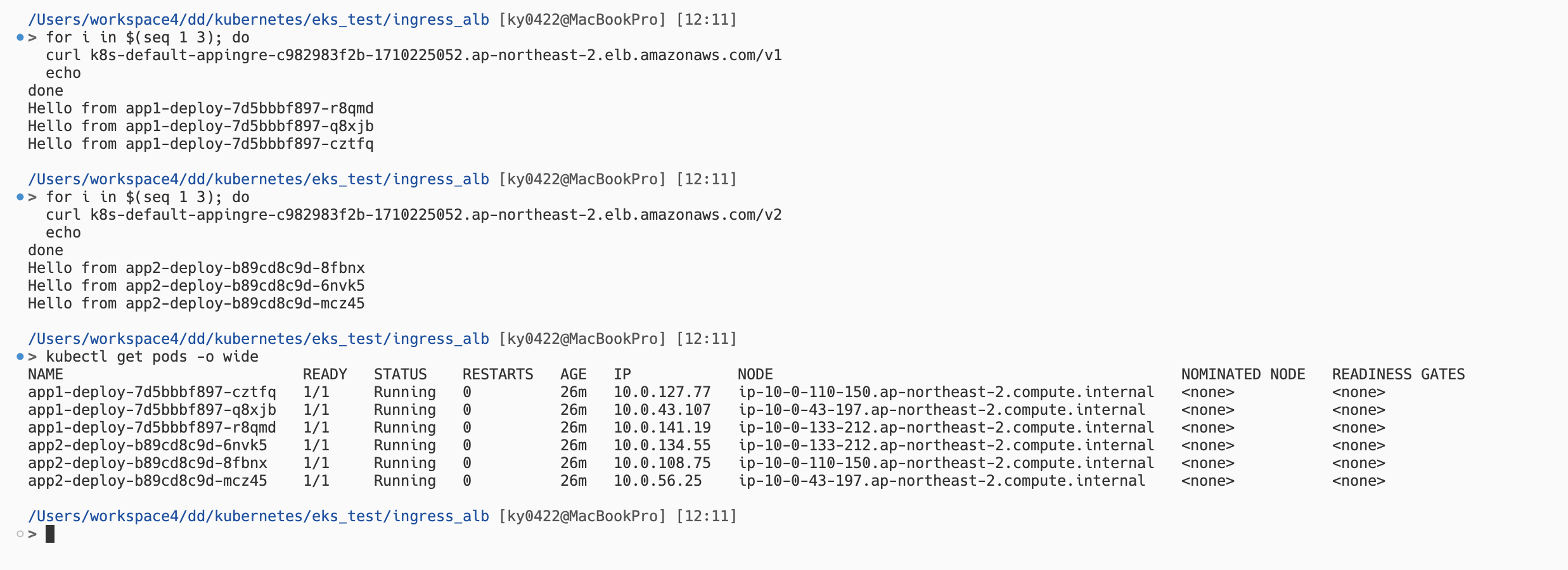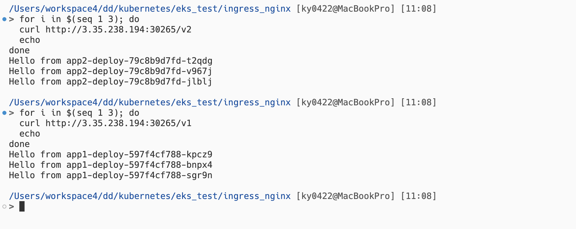 그리고 Ingress는 두개의 Deployment를 통해 경로 라우팅 & 로드밸런싱을 테스트해볼 것이다.